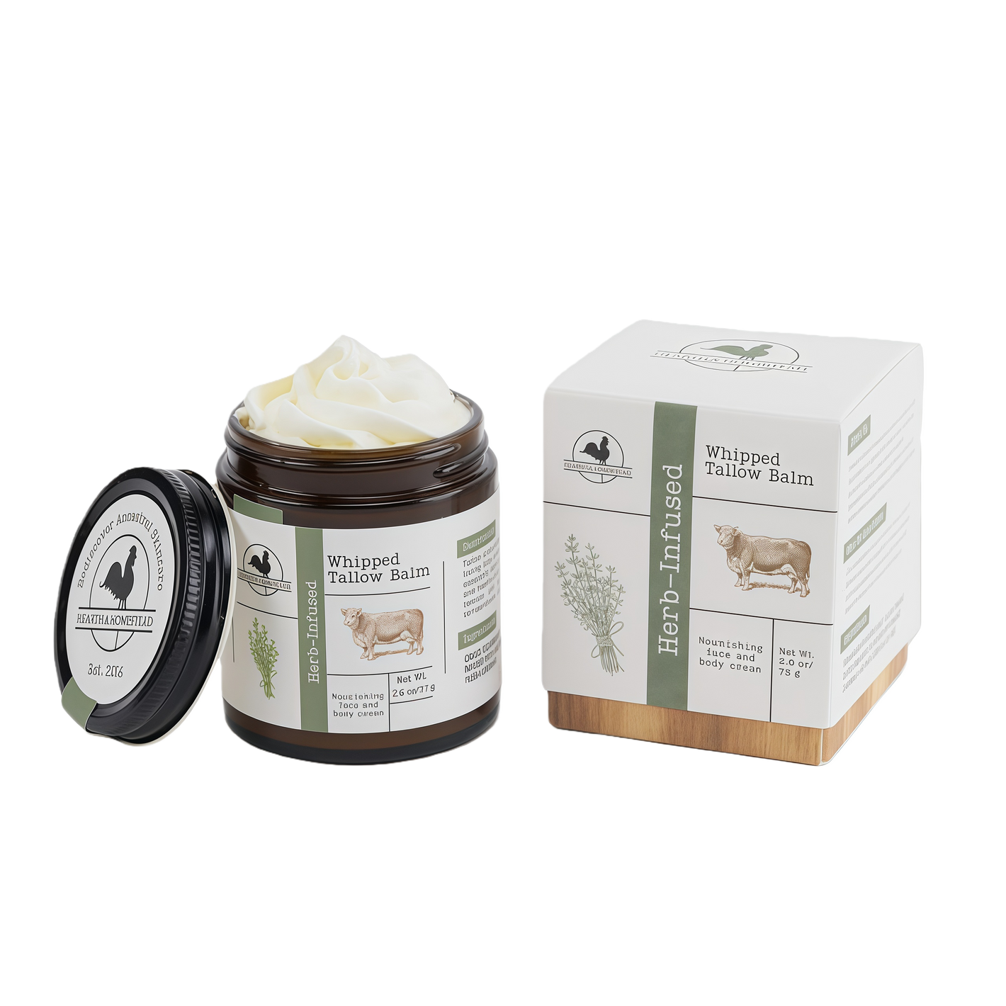 We use only grass-fed and finished tallow sourced from regenerative family farms. Our ingredients are clean, organic whenever possible, and chosen with intention. Every purchase supports small farmers who prioritize animal welfare, soil health, and sustainable land stewardship.