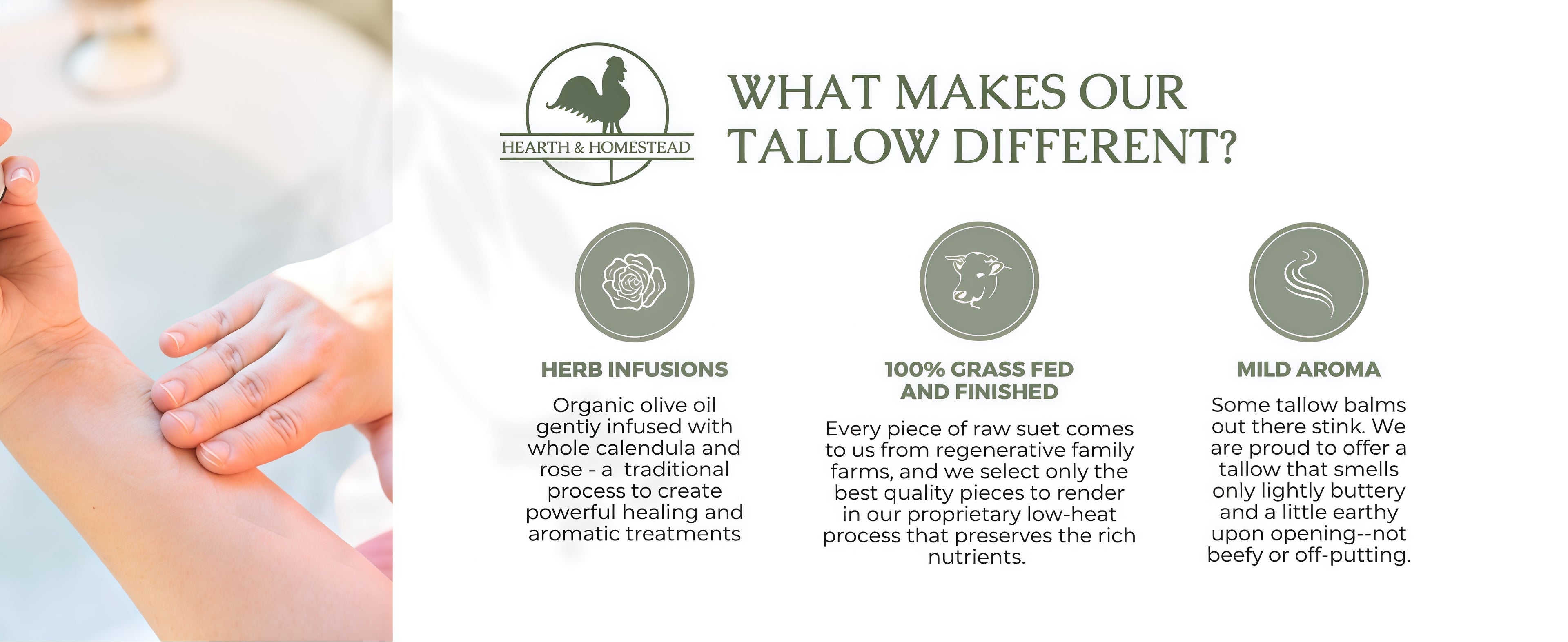 We use only grass-fed and finished tallow sourced from regenerative family farms. Our ingredients are clean, organic whenever possible, and chosen with intention. Every purchase supports small farmers who prioritize animal welfare, soil health, and sustainable land stewardship.