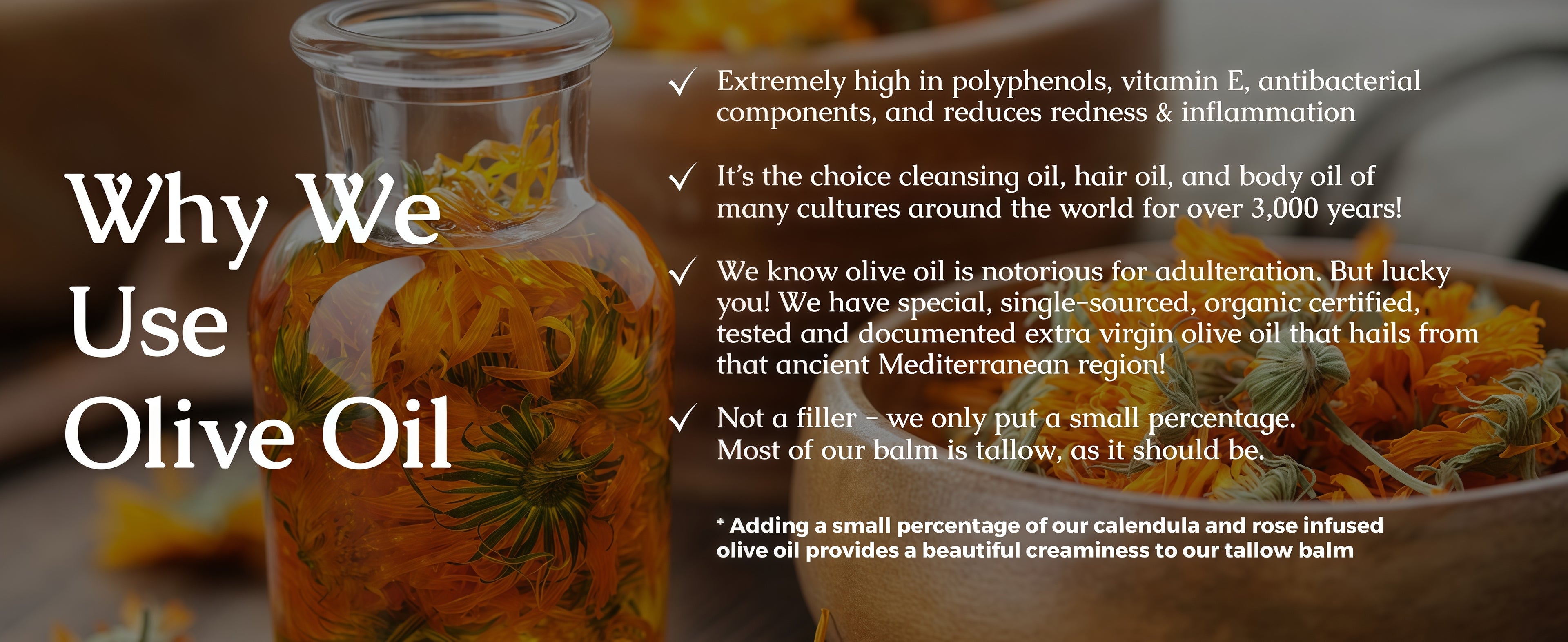 We pride ourselves on creating an unscented tallow balm that is not beefy or unpleasant-smelling. We have developed careful methods of processing our beef fat so that you will only sense the slightest, buttery aroma when you open the jar, and maybe be able to detect the calendula smell in the olive oil! As soon as it goes on your skin, the aroma will disappear.